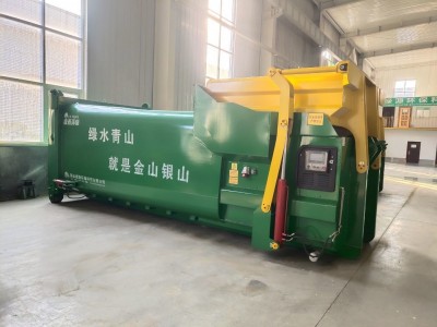 1、垃圾收集车卸料后,设备进行压缩作业。
